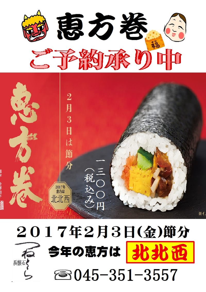 立春大吉”恵方巻”ご予約承り中(2017-1-24掲載)