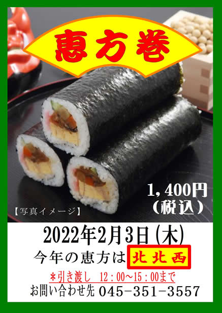 立春大吉”恵方巻”ご予約承り中(2022-1-11掲載)